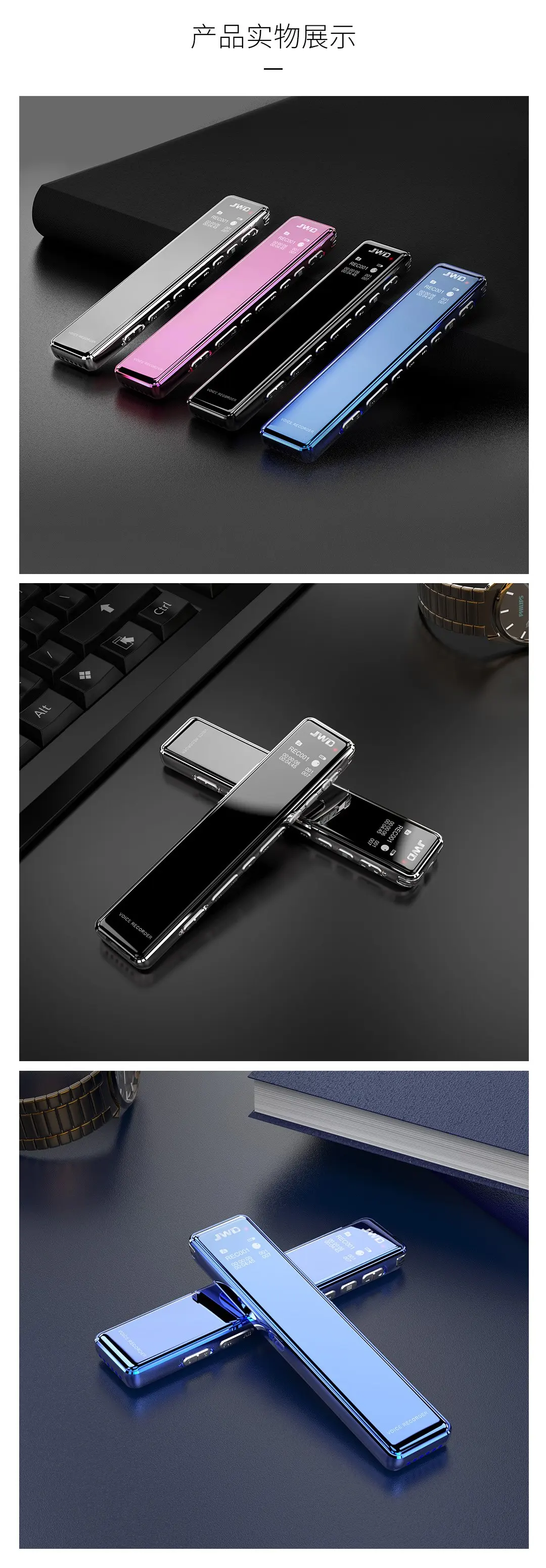 2.5D全鏡面顯屏,高品質麥克風,支持TF卡取換,人性化按鍵設計,智能數字降噪