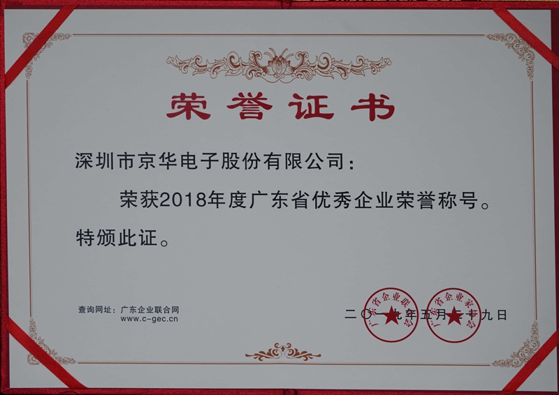 此榮譽申請自2018年底開始,歷時半年左右,經資料申請、初審、終審、公示等流程,由廣東省優秀企業、企業家評審委員會辦公室嚴格把關,最終,京華電子從眾多企業中脫穎而出,位列優秀企業的榜單之中。