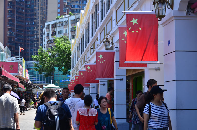 經(jīng)過口岸邊檢檢查完畢后,才算是真正進(jìn)入到中英街景區(qū)內(nèi)。一條窄小細(xì)長(zhǎng)的小巷指引著前來觀光的客人大步邁進(jìn),這就是著名的“一街兩制”的中英街。細(xì)細(xì)品味街區(qū)的獨(dú)特文化,一點(diǎn)點(diǎn)揭開它的神秘面紗。小巷的一邊是香港生活的寫照,繁體字的街邊店鋪和建筑物把香港的文化和中英街回歸祖國(guó)前的歷史面貌展現(xiàn)得淋漓盡致。小巷的另一邊,則完全是中國(guó)元素的印記,一排排的小樓房整齊劃一地漆上了干凈、整潔的大白漆,墻上插滿了一面面的中國(guó)國(guó)旗,顯得如此的昂揚(yáng)、豪氣。