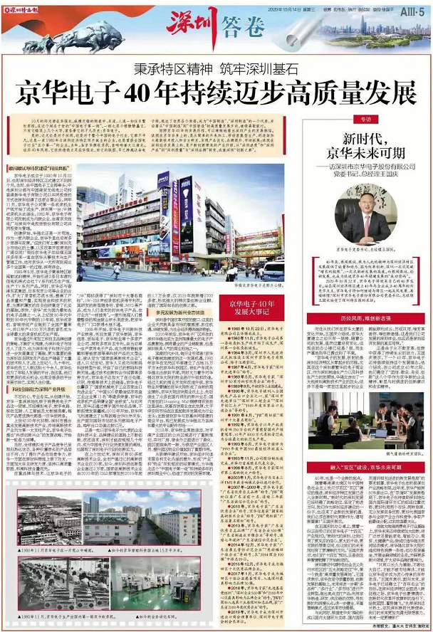 10月14日,《深圳特區報》特刊“深圳答卷”長篇報道京華電子