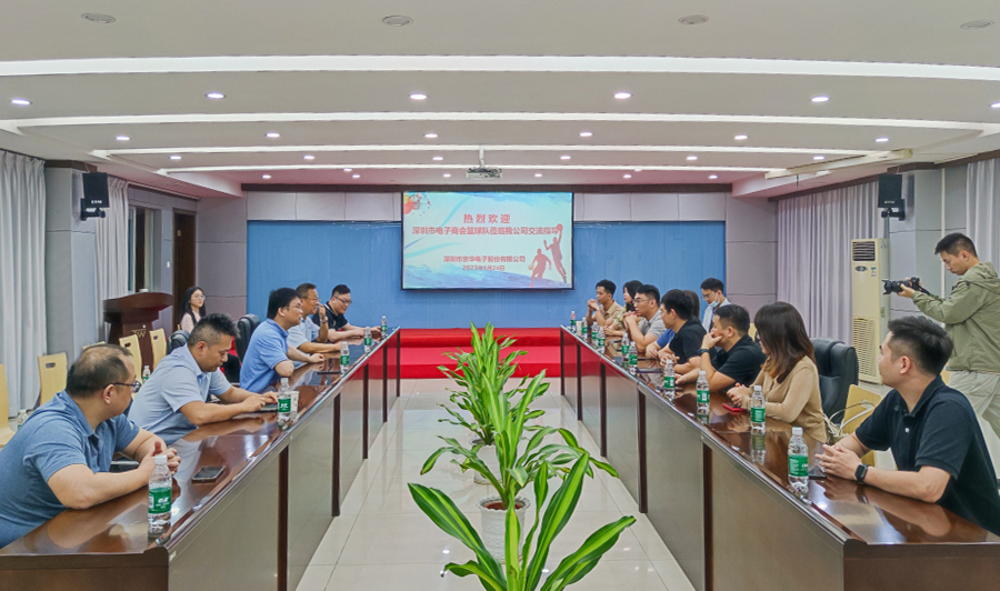 5月24日下午,深圳市電子商會(以下簡稱電子商會)副會長馬立潮一行蒞臨京華智能產業科技園參觀交流。京華公司工會主席張光奎、辦公室主任丁煒、黨群工作部主任楊帆,龍崗京華總經理歐文剛,京華數碼總經理樂益群等人參加座談交流。