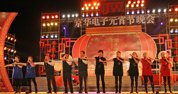2月27日晚,一場由京華公司工會主辦的“2010正月十五鬧元宵”聯歡晚會在京華良安田工業城的新露天舞臺舉行。今年元宵晚會的16個節目全部由職工們自編自演,大家發揮特長通過朗誦、歌唱、武術、小品、舞蹈等形式把工作生活中的趣聞軼事說了出來,把京華一家親唱了出來,把員工們精氣神演了出來。晚會吸引了2000多名職工及周邊群眾前來觀看,深圳電視臺及深圳報社的記者也對晚會進行全程拍攝和采訪。